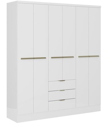 Ordonnancez vos affaires en beauté grâce à l'armoire PEROLI ! Dotée de six portes menant à de vastes penderies et niches, ainsi que de trois tiroirs, elle sera votre allié idéal pour garder une chambre à la fois rangée, et élégante. Caractéristiques Couleur (nuance) : Blanc Matière : Panneau de particule 6 portes Porte battante Type de rangement : 3 tiroirs, 5 lingères, 2 penderies Charge max penderie : 8 kg Tiroir coulissant Type de pose : A fixer au mur À monter soi-même : Charge maximale d'une lingère : 8kg : Charge maximale d'un tiroir : 8kg Dimensions Longueur : 180 cm Hauteur : 206 cm Profondeur : 46.5 cm : Tiroir : L59,1 x P53,4 x H35 cm : Petite porte : L29,4 x H135,4 cm : Grande porte : L29,4 x H188,2 cm Livraison Lors de la livraison, il est conseillé de vérifier que le bon nombre de colis a été livré. Colis Colis n°1 : Longueur 219 cm, Largeur 51 cm, Hauteur 11 cm, Poids 49 kg, Colis n°2 : Longueur 202 cm, Largeur 66 cm, Hauteur 9 cm, Poids 47 kg, - Livraison en bas de chez ...