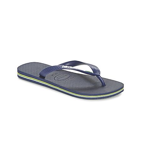 Tongs Havaianas BRASIL LOGO Bleu Disponible en taille homme. 36,38,39,41,43,25,27,29,31,33,43 / 44,45 / 46,35 / 36,37 / 38,39 / 40,41 / 42. Avantages : confortables, solides, légères, résistantes à la chaleur et à l'eau, et antidérapantes. Caractéristiques : bride à chevron de type frise grecque, dessus de la semelle à motif grains de riz et dessous à motif paille de riz.. Homme > Chaussures > Tongs. ...