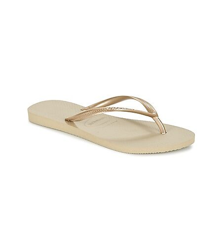 Tongs Havaianas SLIM Doré Disponible en taille femme. 36,37,39,42,35 / 36,37 / 38,39 / 40,41 / 42,31 / 32,23 / 24,25 / 26,27 / 28,29 / 30,33 / 34. Avantages : confortables, solides, légères, résistantes à la chaleur et à l'eau, et antidérapantes. Caractéristiques : bride à chevron de type frise grecque, dessus de la semelle à motif grains de riz et dessous à motif paille de riz.. Femme > Chaussures > Tongs. ...