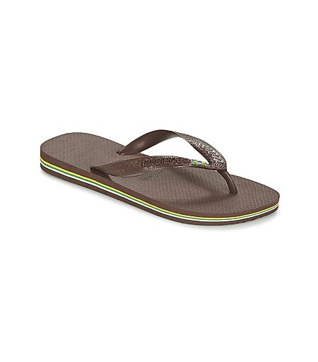 Tongs Havaianas BRASIL Marron Disponible en taille femme. 33 / 34. Avantages : confortables, solides, légères, résistantes à la chaleur et à l'eau, et antidérapantes. Caractéristiques : une bride fine et délicate à chevrons de type frise grecque ornée du drapeau du Brésil, le dessus de la semelle à motif grains de riz et le dessous à motif paille de riz.. Femme > Chaussures > Tongs. ...
