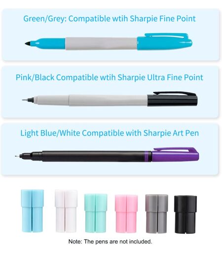 Fonction : 1. Ces adaptateurs de stylo peuvent remplacer le porte-stylo d'origine pour permettre l'utilisation d'autres marqueurs et stylos les plus populaires (marqueurs à pointe fine Sharpie/marqueurs à pointe ultra fine/stylos Sharpie Art) dans votre machine. 2. Compatible avec les machines telles que Explore Air, Air 2, Air 3, Maker et Maker 3. 3. Chaque couleur représente un modèle d'ajustement différent. Vert/gris : pour Sharpie Fine Point ; Rose/noir : pour Sharpie Ultra Fine Point ; Bleu clair/blanc : pour Sharpie Art Pen. 4. L'étalonnage de la profondeur n'est pas nécessaire car l'adaptateur aligne parfaitement chaque stylo/marque pour une hauteur et un centre de point précis. 5. Fabriqué en matière plastique ABS de première qualité, durable et facile à installer et à utiliser. Spécifications : Caractéristiques : Ces adaptateurs de stylo peuvent remplacer le porte-stylo d'origine pour permettre l'utilisation d'autres marqueurs et stylos les plus populaires (marqueurs à pointe ...