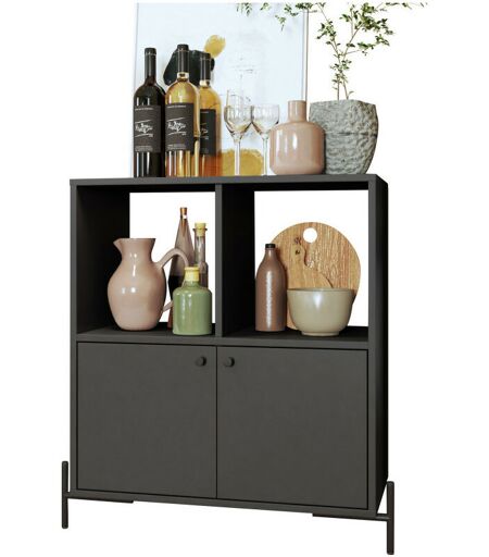 Buffet Armoirette 2 Portes 4 Niches Noir L 75 cm sur PIeds Métal Ronds PEN Largeur 74.5 cm Hauteur 79 cm Profondeur 35 cm Buffet, Lingère, Meuble d'Entrée, armoirette, etc... Aménagement : - 2 Portes - 2 Tablettes - 2 Niches ouvertes - 2 Niches ferméee - 2 Pieds Métalliques Ronds et Fins Caractéristiques techniques : - Bois certifiés FSC, issus de forêts gérées durablement. - Structure en panneaux de particules de bois mélaminé coloris Noir épaisseur 15 mm. - Arrière en panneaux de fibres de bois (MDF) épaisseur 3 mm. - Pieds Métalliques - Garantie 2 ans - Poids total net : 16.9 kg. Dimensions utiles - 2 Niches Hautes Ouvertes : Largeur 31.5 cm x Hauteur 33 cm x Profondeur 33.4 cm chacune - 2 Niches Basses Fermées : Largeur 31.5 cm x Hauteur 33 cm x Profondeur 33.4 cm chacune - Un croquis avec les différentes dimensions utiles est visible avec les photos. Montage : - Meuble Livré démonté - Difficulté de montage : Facile - En bas de la page, vous pouvez télécharger la notice de ...