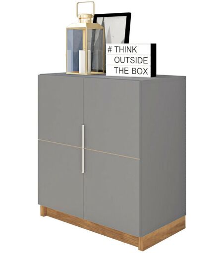 BEAUX MEUBLES PAS CHERS Armoire Basse 2 Portes Gris Mat 4 Niches L 68 H 76 P 37.6 cm