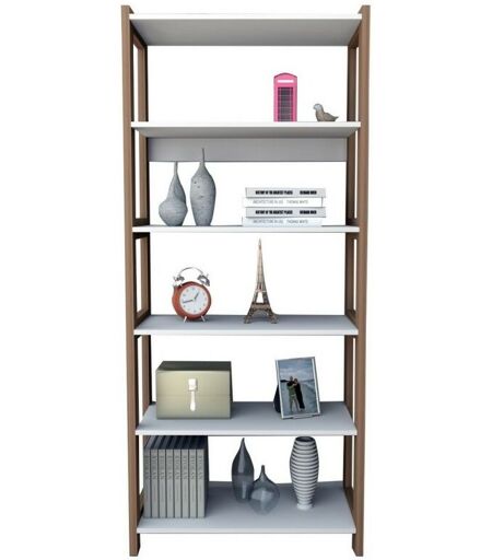 BEAUX MEUBLES PAS CHERS Rayonnage 5 Etagères Blanc Châtaignier 5 Niches L 75 H 171.5 P 35 cm
