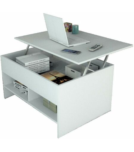 Beaux Meubles Pas Chers - Table Basse Relevable 90 cm Blanche 3 Niches