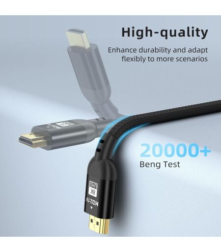 Longueur compacte de 2 m pour les espaces petits à moyens Avec une longueur de 2 m, ce câble HDMI 2.1 offre un équilibre idéal entre flexibilité et propreté, parfait pour connecter des appareils à proximité, comme brancher une console de jeux à un moniteur 4K à proximité ou relier une barre de son à un téléviseur mural. Il offre des performances 8K60Hz, 4K120Hz et 48Gbps sans compromis, garantissant des signaux stables sans aucun décalage ni perte de signal, même dans des configurations compactes.Des images de qualité cinéma et une excellence en matière de jeux vidéo Profitez d'images de qualité cinéma grâce à la prise en charge des taux de rafraîchissement élevés 8K Ultra HD et 4K, qui font ressortir chaque image de film et chaque action de jeu avec des détails nets. Équipé des technologies VRR taux de rafraîchissement variable et ALLM mode de latence automatique, il élimine les déchirures d'écran et réduit le décalage d'entrée, ce qui est essentiel pour les jeux compétitifs sur PS5, Xbox Series XS ou les moniteurs de jeu haut de gamme. Le HDR dynamique améliore la précision des couleurs, donnant vie à des tons vifs dans les scènes sombres comme dans les scènes lumineuses.Durabilité à toute épreuve pour une utilisation quotidienne Conçu pour résister à une utilisation quotidienne et à des mouvements occasionnels, ce câble de 2 mètres est doté d'une gaine épaisse en nylon tressé qui résiste à l'effilochage, à la flexion et à l'emmêlement. Le triple blindage feuille d'aluminium couches tressées bloque les interférences électromagnétiques, garantissant une transmission stable même dans les configurations comportant plusieurs appareils électroniques. Les connecteurs renforcés empêchent les ruptures dues à des tractions accidentelles, prolongeant la durée de vie du câble pour des années de performances fiables.Garantie de 3 ans et assistance par des experts Chaque câble HDMI 2.1 de 2 mètres est soumis à des tests rigoureux en usine afin de répondre aux normes de performance 8K, vous garantissant ainsi un produit de haute qualité. Bénéficiant d'une garantie de 3 ans, nous couvrons les défauts, les problèmes de signal ou les dommages. Il vous suffit de contacter notre équipe pour obtenir un remplacement gratuit. Notre service clientèle est à votre disposition pour répondre à toutes vos questions, vous pouvez donc être sûr que votre installation est protégée.Garantie de 3 ans et assistance clientèle Chaque câble HDMI 2.0 de 2M mètres est soumis à des tests rigoureux afin de répondre aux normes de performance 4K, garantissant ainsi sa qualité. Couvert par une garantie de 3 ans, nous prenons en charge les défauts, les problèmes de signal ou les dommages. Il vous suffit de contacter notre équipe pour obtenir un remplacement gratuit. Notre service clientèle est disponible 24 heures sur 24 pour répondre à toutes vos questions, vous pouvez donc être sûr que votre installation étendue est protégée. ...
