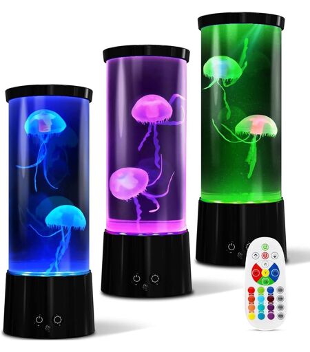 Lampe Meduse Lumineuse AquariumLa dernière lampe meduse d'AONESY propose des méduses plus réalistes et un moteur sans balai à durée de vie plus longue. La conception de la sortie d'eau a été modifiée et une plaque de fond en acrylique a été ajoutée pour éviter que les méduses ne se coincent.Lampe Lave TélécommandéeFonctionne la lampe méduse led par câble de données USB ou 3 piles AAA pile non incluse. Lumière dégradée à 3 niveaux et 17 effets de changement de couleur fascinants, vous pouvez contrôler par bouton ou télécommander la lampe aquarium comme vous le souhaitez.Lampe Relaxante MeduseLe mouvement silencieux de la vie réaliste comme les méduses dans le réservoir crée une belle ambiance tranquille, paisible et apaisante en haute mer qui pourrait aider à réduire le stress et l'anxiété. lampe à lave meduse, excellent cadeau pour les adultes, les enfants, les amoureux ou tous ceux qui aiment les aquariums.Lampe Lave d'ambianceDécorez votre chambre avec la lumière d'ambiance changeante de couleur du réservoir de méduses, créera une atmosphère paisible et romantique. Détendez votre corps et votre esprit toute la journée.Lampes à laveCadeau pour l'anniversaire de Noël. Décorations pour la décoration de bureau à domicile. Le forfait comprend 2 lampe méduse, 1 câble USB, 1 cuillère, 1 télécommande, 1 instruction. ...
