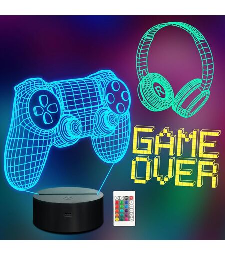TIANYI-Game Over Lamp - Casque de jeu - Veilleuse 3D (3 modèles) - Avec télécommande - 16 couleurs changeantes - Décoration de salle de jeux vidéo - Cadeau Pour hommes et adolescents\u2026