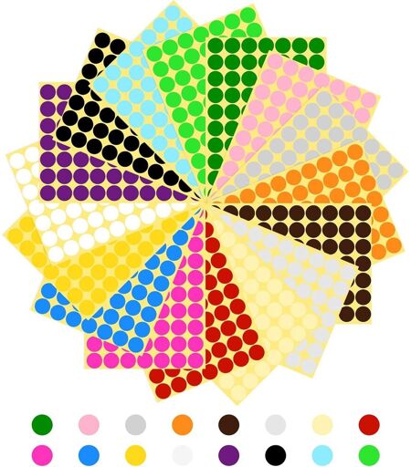 Tianyi-Pastille Autocollante De Couleur, 1120pcs Gommettes Autocollantes Rondes, 16 Feuilles 19mm Étiquettes De Codage Adhésifs Pour Calendriers Scolaires Bureau Carte Artisanat Art (16 Couleurs)