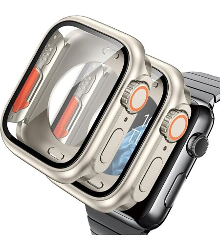 Cauc-2 Pièces Coque Pour Apple Watch Series 9/8/7 41mm (On Dirait Ultra Et Ultra2) Pc Compatible Iwatch 41mm 2 En 1 Coque Protecteur D'écran En Verre Trempé+Couverture Arrière,Lumière Des Etoiles