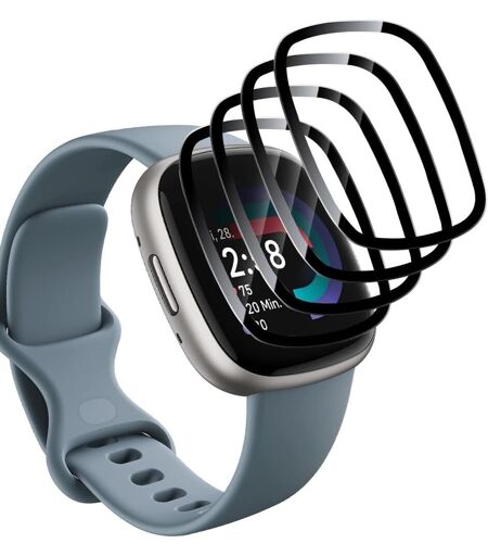 Cauc-Verre Trempé Pour Fitbit Versa 4/Versa 3/Sense 2/Sense Protection Écran [4 Pièces], Pmma Film Protecteur Composite, 3d Incurvé Protection Écran Pour Fitbit Versa 4/Versa 3/Sense 2/Sense