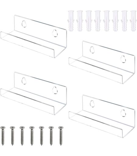 Cauc-4 Pièces Support Mural En Vinyle, Étagère Flottante Murale, Etagère À Disques En Acrylique, Étagères Murales En Acrylique Clair, Pour Le Placement De Dossiers D'albums Photos Et De Collections