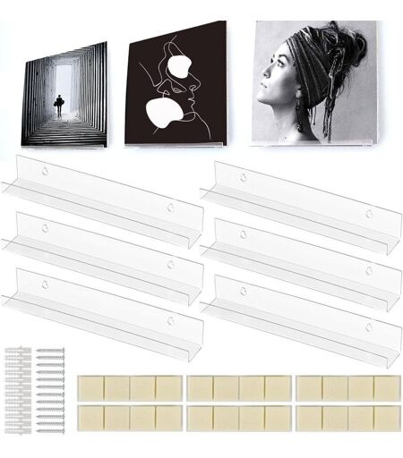 Cauc-Etagere Murale Transparente 6pcs Etagères Flottantes En Acrylique Supports Muraux Pour Disque Etagère À Vinyle De Présentation Murale Organisateur D'étagère Pour Photos Livres, 30,5 X 4,3 Cm