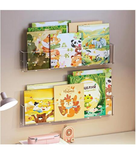 Cauc-Bibliothèque Murale En Acrylique Transparent Pour Enfants, Étagère De Rangement Pour Livres, Magazines Et Disques Vinyles (2)