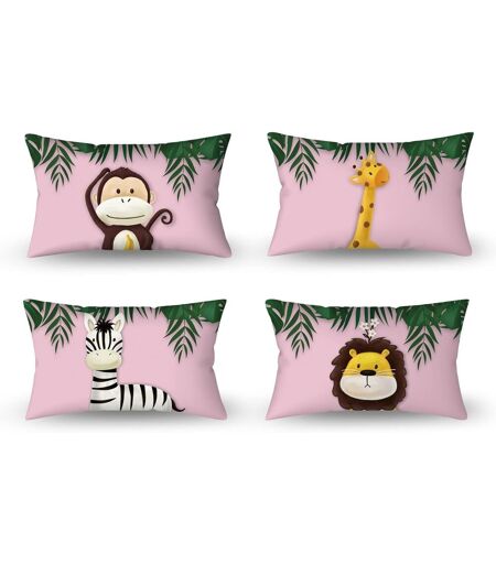 KALANKA-30x50cm Lot de 4 Mignonne Dessin animé Animal Housse de Coussin Foresta Scimmia Giraffa Floreale Pianta Doux Court Peluche Carré Bébé Bleu Taie d'oreiller Enfant Fête Canapé Chambre Sofa